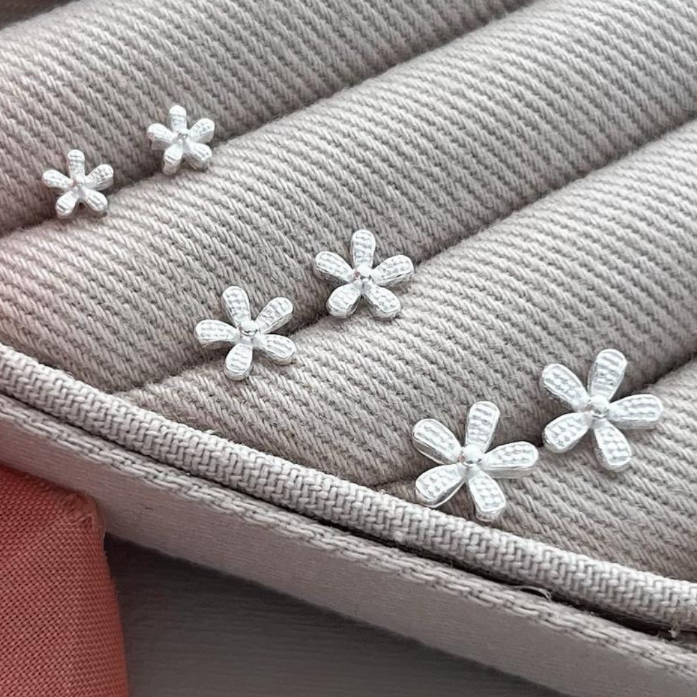 Flores em Destaque: Cada par de brincos deste trio apresenta uma flor delicadamente esculpida em Prata 925, destacando-se pela sua elegância e beleza atemporal. Seja você fã de peças mais discretas ou que adoram chamar a atenção, há um par de brincos neste conjunto que irá cativar o seu coração.